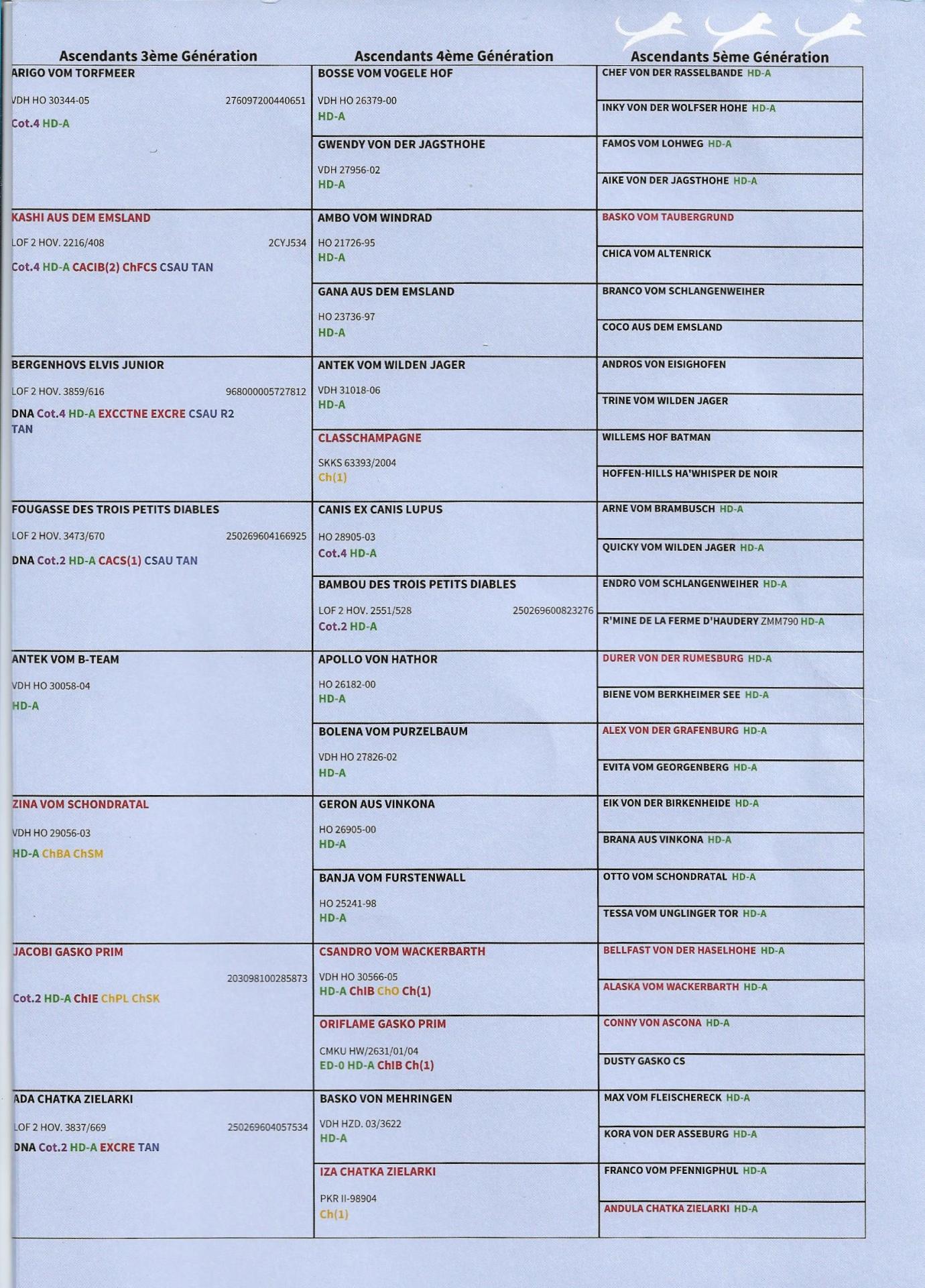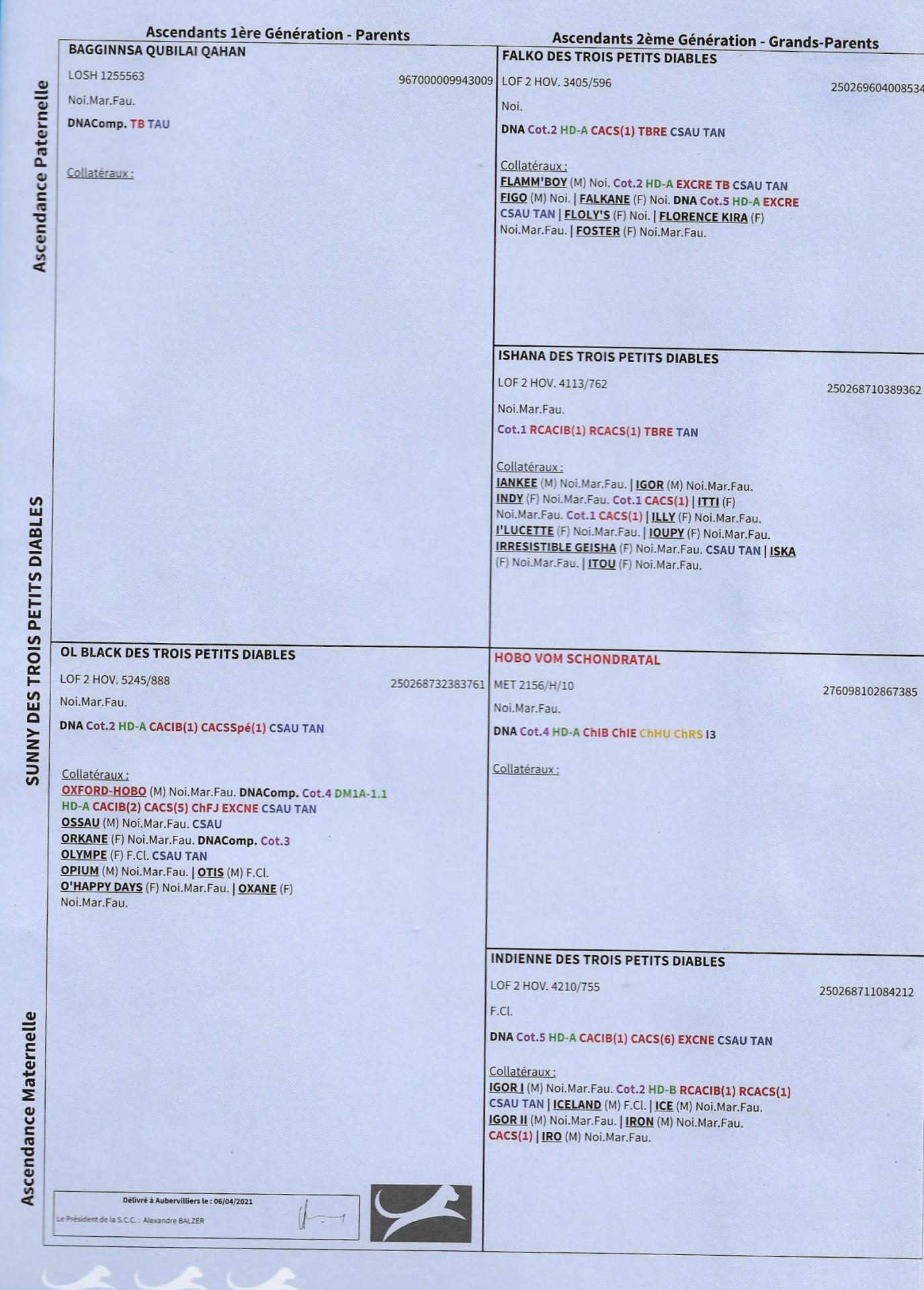 PEDIGREE CERTIFIE PAR ADN